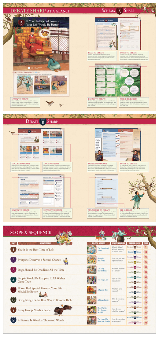 - ÇнÀÀÚµéÀº Âù, ¹Ý ³í°Å¸¦ ±¸¼ºÇϰí, °ø°ÝÇϰí, ´Ù½Ã À籸¼ºÇÏ´Â Åä·ÐÀÇ Áغñ°úÁ¤À» ÅëÇØ ½º½º·Î Âù, ¹ÝÀÇ ÀÔÀå¿¡¼­ Åä·ÐÇÏ°í »ó´ëÆÀÀ» Æò°¡Çϱâ±îÁö ¿ÏÀüÇÑ Åä·ÐÀÇ È帧À» ÇÑ °ú ³»¿¡¼­ °æÇèÇÏ°Ô µË´Ï´Ù. Debate Sharp´Â °¢ unit¿¡¼­ ´Ù¸¥ ÁÖÁ¦·Î ¸Å¹ø ¿ÏÀüÇÑ Åä·ÐÀÇ Àü °úÁ¤À» °æÇèÇÒ ¼ö Àֱ⠶§¹®¿¡, ±³Àç Àüü¸¦ ÅëÆ²¾î 1, 2¹øÀÇ Åä·ÐÀ» Çϵµ·Ï ¼³°èµÈ Ÿ Åä·Ð ±³Àçµé°ú Â÷º°È­ µË´Ï´Ù.