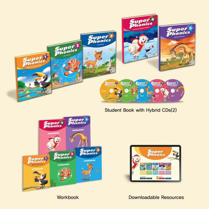Super Phonics´Â EFL ÇнÀÀÚµéÀ» À§ÇØ ´Ù¼¸ ´Ü°èÀÇ ½Ã¸®Áî·Î ±¸¼ºµÇ¾î ÀÖ´Ù.