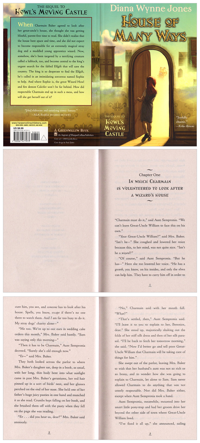 By opening that door, Charmain has become responsible for not only the house, but for an extremely magical stray dog, a muddled young apprentice wizard, and a box of the king's most treasured documents. She has encountered a terrifying beast called a lubbock, irritated a clan of small blue creatures, and wound up smack in the middle of an urgent search. The king and his daughter are desperate to find the lost, fabled Elfgift—so desperate that they've even called in an intimidating sorceress named Sophie to help. And where Sophie is, can the Wizard Howl and fire demon Calcifer be far behind?
