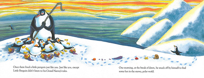 ¿øÇÏ´Â ´ë·Î ¹Ù²Ù¾î ¸¸µé¾îº¸´Â À̾߱âÀÇ ¸Å·Â Àç¹ÌÀÖ´Â ³î °Å¸®¸¦ ã¾Æ ¹«¸®¿¡¼­ ÀÌÅ»ÇÑ ¾Æ±â Æë±ÏÀÌ ÇÑ ¹«¸®ÀÇ »õµé°ú ÇÔ²² ÃãÀ» Ãß´Â ¸ð½À°ú ¹è¸¦ Ÿ°í ã¾Æ°£ ¹«µµÀå¿¡¼­ ½Å³ª°Ô ³ë´Â Àå¸é¿¡¼­´Â »ó»ó·ÂÀÌ Ç³ºÎÇÑ ÀÛ°¡ÀÇ ¿ª·®ÀÌ ¸¾²¯ ¹ßÈֵǰí ÀÖ½À´Ï´Ù. ÇÒ¸Ó´Ï Æë±ÏÀÌ °í·¡°¡ ¾Æ±â Æë±ÏÀ» Àâ¾Æ¸Ô´Â °ÍÀ¸·Î À̾߱⸦ ¸¶¹«¸®ÇÏ·Á ÇÏÀÚ, ¾Æ±â Æë±ÏµéÀÌ ¿ïÀ½À» ÅͶ߸³´Ï´Ù. À̶§ ÇÒ¸Ó´Ï Æë±ÏÀº ÀçÄ¡¸¦ ¹ßÈÖÇØ À̾߱⸦ ÇØÇÇ¿£µùÀ¸·Î ¹Ù ²ß´Ï´Ù. ÀÌ·¸µí ¿¾³¯À̾߱âÀÇ ¹¦¹Ì Áß Çϳª´Â ¸»ÇÏ´Â À̰¡ ¿øÇÏ´Â ´ë·Î À̾߱⸦ ²Ù¸ç¼­ µé·ÁÁÙ ¼ö ÀÖ´Ù´Â °ÍÀ̰ÚÁö¿ä. ´ÙÇàÈ÷ ¸»½é²Ù·¯±â Æë±ÏÀº ´Ù½Ã ¹«¸®·Î µ¹¾Æ¿À±ä ÇßÁö¸¸, ²¿¸® ³¡ºÎºÐÀÌ »ì¦ °¥¶óÁø °ÍÀ» º¼ ¼ö ÀÖ½À´Ï´Ù. ÀÌ Àå¸é°ú ¸¶Áö¸· ¹®Àå¿¡¼­ ¾Ë ¼ö ÀÖµíÀÌ Little penguin¡¯s tale(À̾߱â)Àº ¹Ù·Î Little penguin¡¯s tail(²¿¸®)¿¡ ´ëÇÑ À̾߱⸦ ´ã°í ÀÖ´Â ¼ÀÀÔ´Ï´Ù. ÇãµÕÁöµÕ ¹«¸®¸¦ µÚÂÑ´Â ¸»½é²Ù·¯±â ¾Æ±â Æë±ÏÀº »ç¶û½º·¯¿î ¿ì¸® ¾ÆÀ̵éÀÇ ²Ù¹Ò¾ø´Â ¸ð½ÀÀ̱⵵ ÇÕ´Ï´Ù.