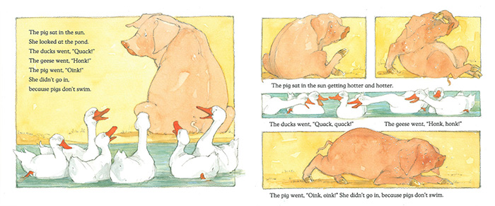 ´õ¿î ¿©¸§ ³¯ Neligan ¾¾ÀÇ ³óÀå¿¡¼ ÀÏ¾î³ ½Ã¿øÇÑ »ç°Ç ³óÀå µ¿¹°µéÀÇ ½Ã¿øÇÑ ¿©¸§ À̾߱⹫ô ´þ°í °ÇÁ¶ÇÑ ³¯ÀÔ´Ï´Ù. ³óºÎ Neligan ¾¾´Â ½Ã³»¿¡ °¡´À¶ó ³óÀåÀ» ºñ¿ì°í µÅÁö ÇÑ ¸¶¸®°¡ ¿¬¸ø°¡¿¡ ¾É¾Æ ÀÖ½À´Ï´Ù. µÅÁö´Â ¿¬¸ø¿¡¼ ³ë´Ò°í ÀÖ´Â °ÅÀ§¿Í ¿À¸®¸¦ ¹°²ô·¯¹Ì ¹Ù¶óº¸°í ÀÖ½À´Ï´Ù. ¾ó¸¶³ª ½Ã¿øÇÒ±î¿ä? ¡°Quick!¡±, ¡±Honk!¡± ½Ã²ô·´°Ô ¿ï¾î´ë´Â ¿À¸®¿Í °ÅÀ§¸¦ º¸°í ÀÖÀÚ´Ï Á¡Á¡ ´õ ´õ¿öÁö´Â °Í °°½À´Ï´Ù. ÇÏÁö¸¸ µÅÁö´Â ¼ö¿µÀ» ÇÏÁö ¾ÊÀ¸´Ï±î ¹°¿¡ µé¾î°¡Áö ¾Ê½À´Ï´Ù. ½Ã°£ÀÌ È带¼ö·Ï Á¡Á¡ ´õ ´õ¿öÁö°í °ÅÀ§¿Í ¿À¸®´Â ´õ ½Ã²ô·´°Ô ¿ï¾î´ë°í °á±¹ ´õÀ§¸¦ ÂüÁö ¸øÇÏ°í ¹Ù´Ú¿¡ ´©¿ö¹ö¸° µÅÁöÀÇ ¿Â ¸ö¿¡ ¶¡ÀÌ È帨´Ï´Ù.