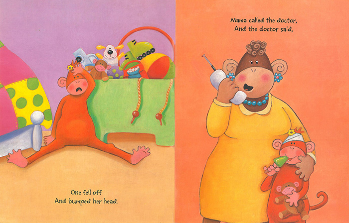 Five Little Monkeys¸¦ Èï¹Ì·Ó°Ô °¢»öÇÑ ÀÛǰ ÀÌ Ã¥Àº ¹Ýº¹µÇ´Â ¸®µëÀ¸·Î Àß ¾Ë·ÁÁø Five Little Monkeys¸¦ Èï¹Ì·Ó°Ô °¢»öÇÑ ÀÛǰÀÔ´Ï´Ù. ¿­ ¸¶¸® ¿ø¼þÀ̵éÀÌ Ä§½ÇÀ» ¹þ¾î³ª ·Ñ·¯½ºÄÉÀÌÆ®¸¦ Ÿ°í ¼ÒdzÀ» °¡°í, ³¬½Ã¸¦ Çϰí, ¼û¹Ù²ÀÁúÀ» ÇÏ´Â °úÁ¤À» ÀçÄ¡ ÀÖ°Ô ±×·È½À´Ï´Ù. ƯÈ÷ ÇÑ ¸¶¸®¾¿ ¿ø¼þÀ̰¡ ´ÙÄ¥ ¶§ ¸¶´Ù ÈïºÐÇÏ´Â ÀÇ»ç ¼±»ý´ÔÀÇ ¸ð½ÀÀº ¿ôÀ½À» ÀھƳÀ´Ï´Ù.