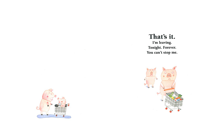 ¾ö¸¶¿Í ÄÉÀÌÅ© Àç·á¸¦ »ç·¯ °£ ¾Æ±â µÅÁö´Â ¼îÇΠīƮ¿¡ Ÿ°í ÀÚ½ÅÀÌ ¿øÇÏ´Â °ÍÀ» »ç´Þ¶ó°í ÅõÁ¤À» ºÎ¸³´Ï´Ù. ¾ö¸¶¿¡°Ô È¥³ª°í´Â ÁýÀ» ³ª°¡°Ú´Ù°í ¼±¾ðÇÕ´Ï´Ù. ÇÏÁö¸¸ ¾Æ±â µÅÁöÀÇ ¼±¾ðÀ» µéÀº ¾ö¸¶ µÅÁö´Â ÀüÇô ³î¶óÁö ¾Ê°í ÄÉÀÌÅ©¸¦ ¸¸µé¸é¼­ ¾Æ±â µÅÁö¿Í ´ëÈ­¸¦ À̾´Ï´Ù.