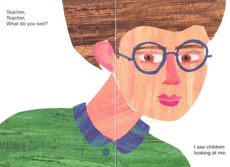 "What do you see?" (¹«¾ùÀ» º¸°í ÀÖ´Ï?)¿Í "I see a ~ Looking at me." (³ª´Â ³ª¸¦ º¸°í ÀÖ´Â ~À» º¸°í ÀÖ¾î)¶ó´Â ¹Ýº¹¾î±¸¸¦ ÅëÇØ ¸¶Ä¡ ÇÑ ÆíÀÇ ¶óÀÓ °°Àº ´À³¦À» ÁÖ°í ÀÖ½À´Ï´Ù.